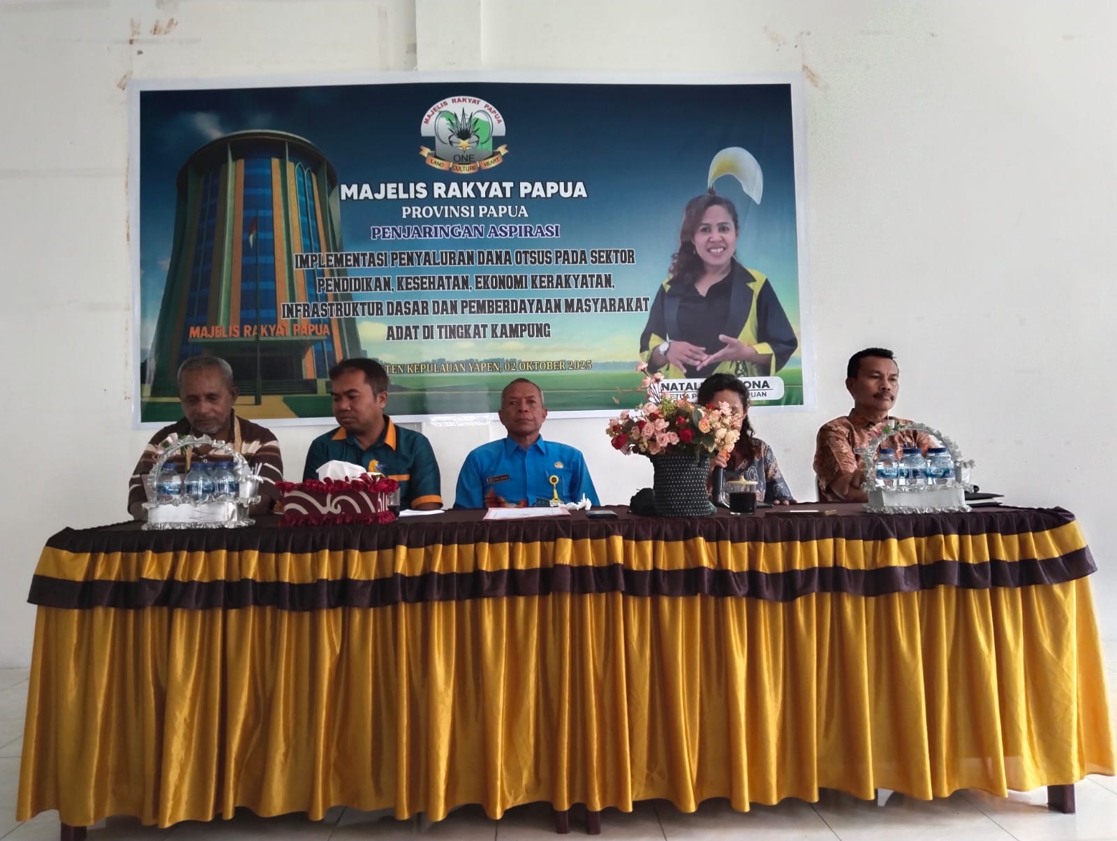 Giat tersebut dengan mengangkat tema sentral : “Implementasi penyaluran dana Otsus pada sektor Pendidikan, Kesehatan, Ekonomi Kerakyatan, Infrastruktur Dasar dan Pemberdayaan Masyarakat Adat ditingkat kampung Kabupaten Kepulauan Yapen, Provinsi Papua. ”